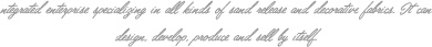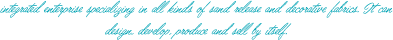 從事各類沙發(fā)布、裝飾布的工貿(mào)一體化企業(yè),可自行設(shè)計(jì)、開發(fā)、生產(chǎn)、銷售。